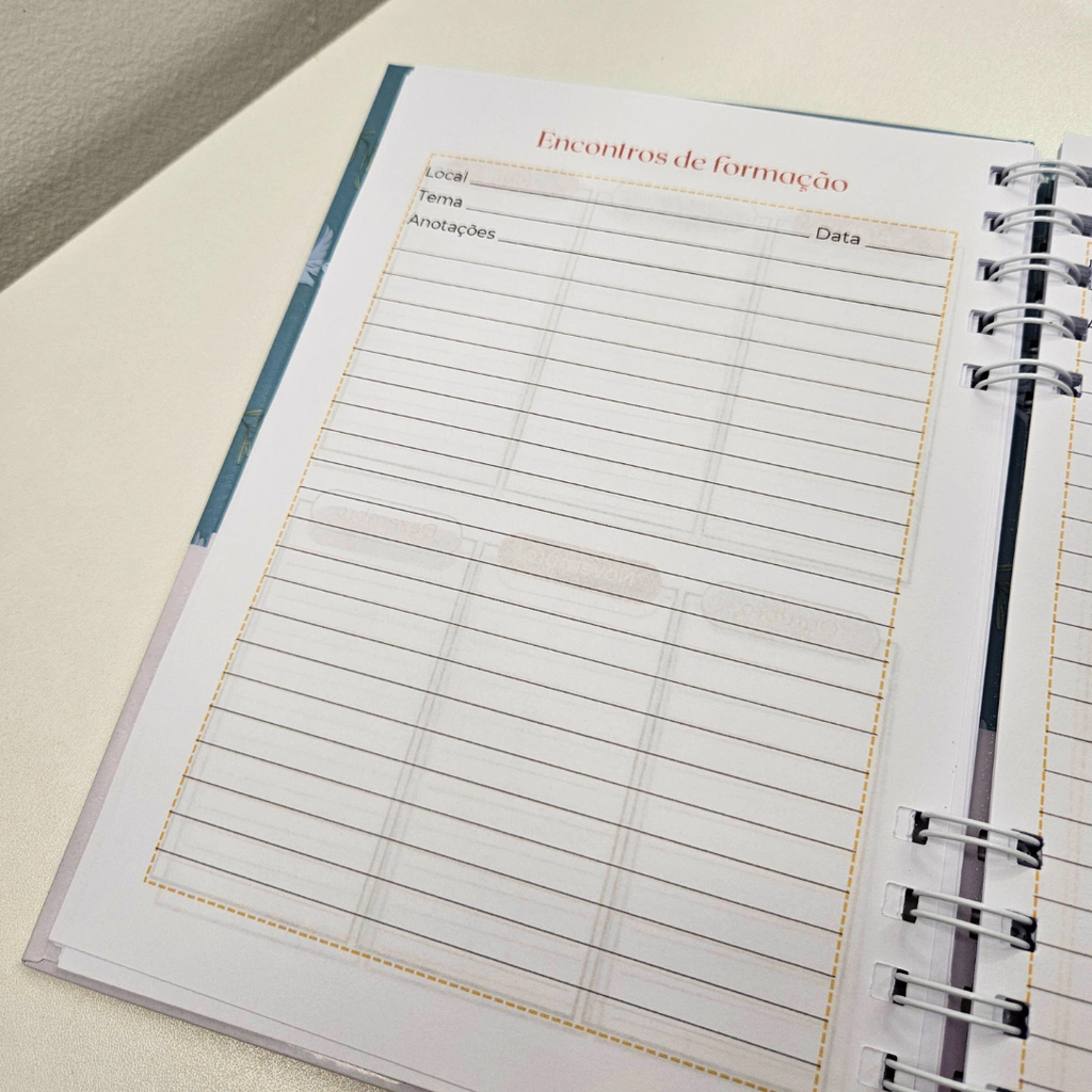 Espaço Interno Organizado: Páginas pensadas para anotar encontros, compromissos, planejamentos de aulas e eventos especiais.