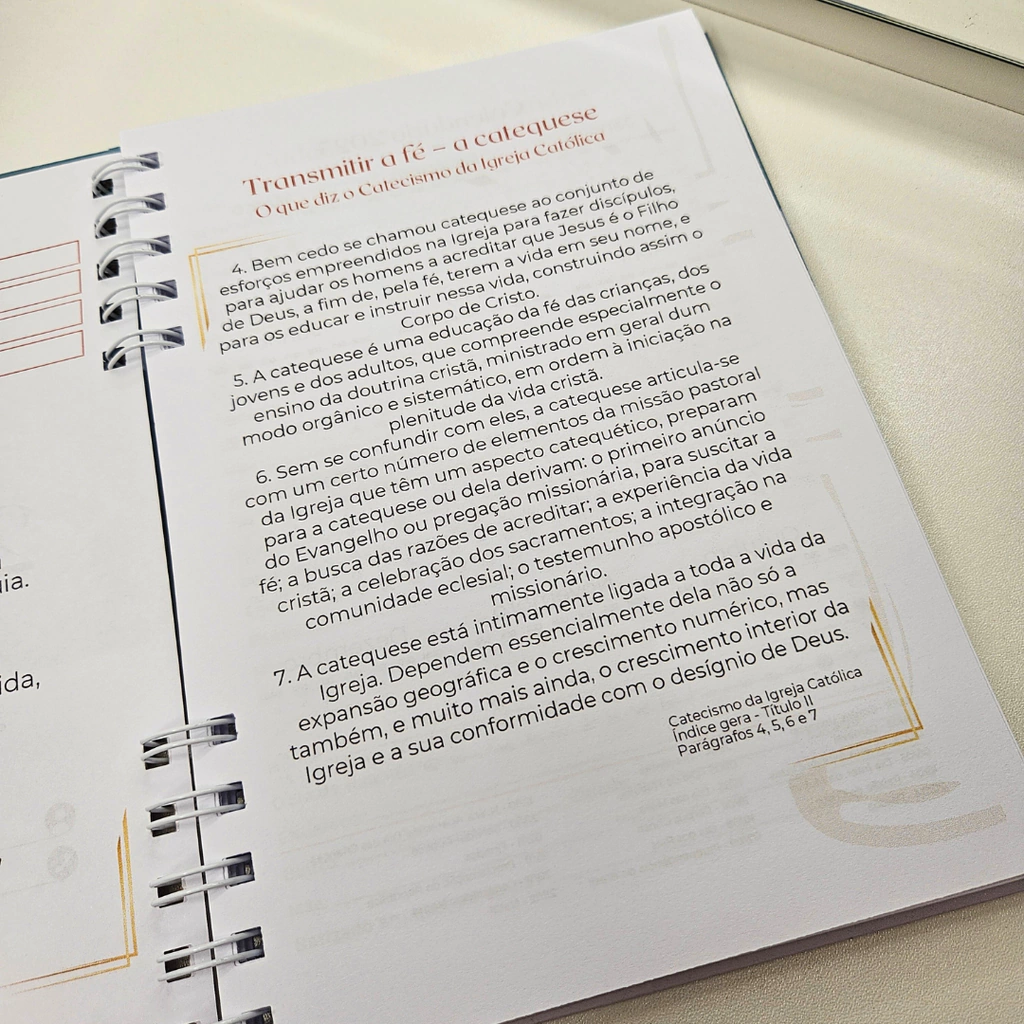 Organize sua missão com ainda mais carinho e dedicação usando a nossa Agenda do Catequista Personalizada! Pensada para quem se dedica à evangelização, ela é prática, especial e feita para acompanhar todos os momentos importantes da catequese.