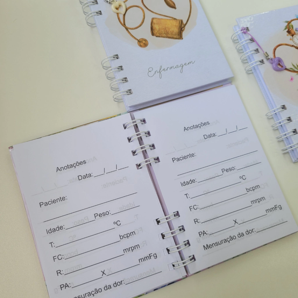 Mantenha todas as informações essenciais de seus pacientes organizadas e acessíveis com a nossa Caderneta de Bolso de Enfermagem. Projetada para atender às necessidades dos profissionais de saúde, esta caderneta combina praticidade com personalização exclusiva.