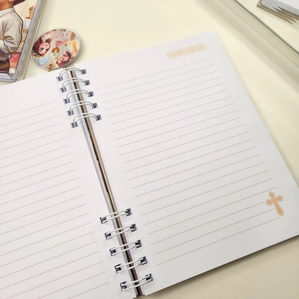 Guarde cada ensinamento, oração e descoberta espiritual em um caderno tão único quanto sua fé.