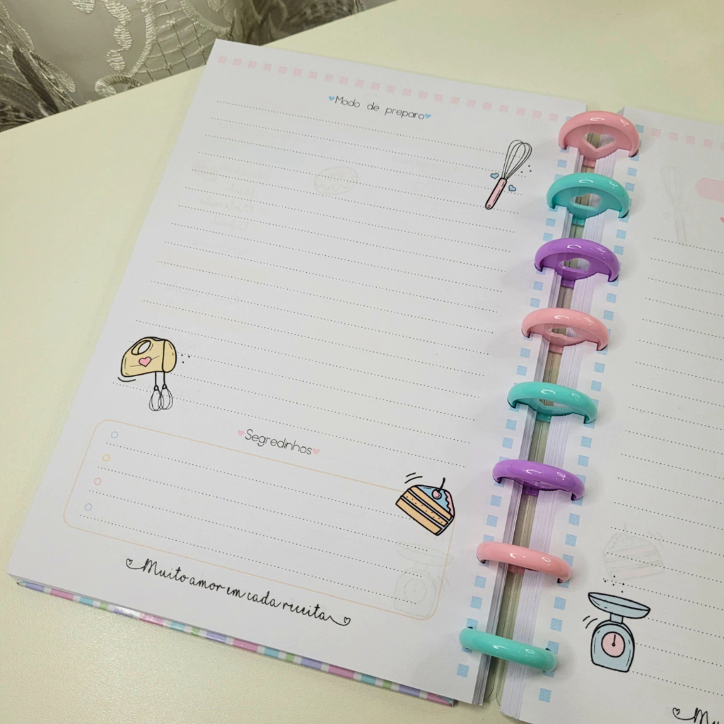 Experimente a liberdade de criar e organizar suas receitas da maneira que quiser com o Caderno de Receitas Infinito Personalizado! Equipado com discos que permitem mover e adicionar folhas conforme necessário, este caderno oferece uma flexibilidade sem igual para quem adora cozinhar e manter suas receitas organizadas e em constante evolução.