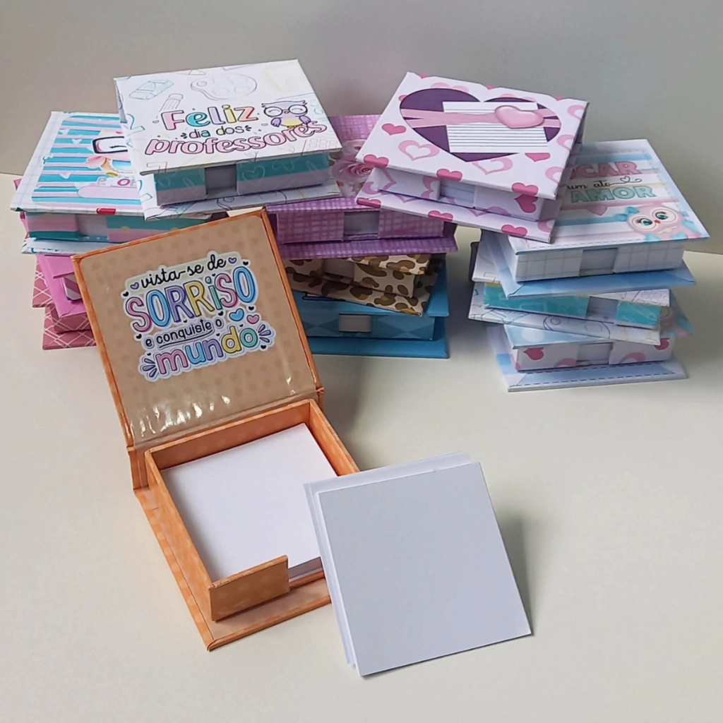 A Caixinha de Recados Personalizada é o acessório perfeito para quem adora anotar lembretes, mensagens e ideias de forma prática e charmosa. Feita em papel cartonado resistente, com folhas em branco, ela é ideal para uso no dia a dia, seja no escritório, em casa ou como presente especial.