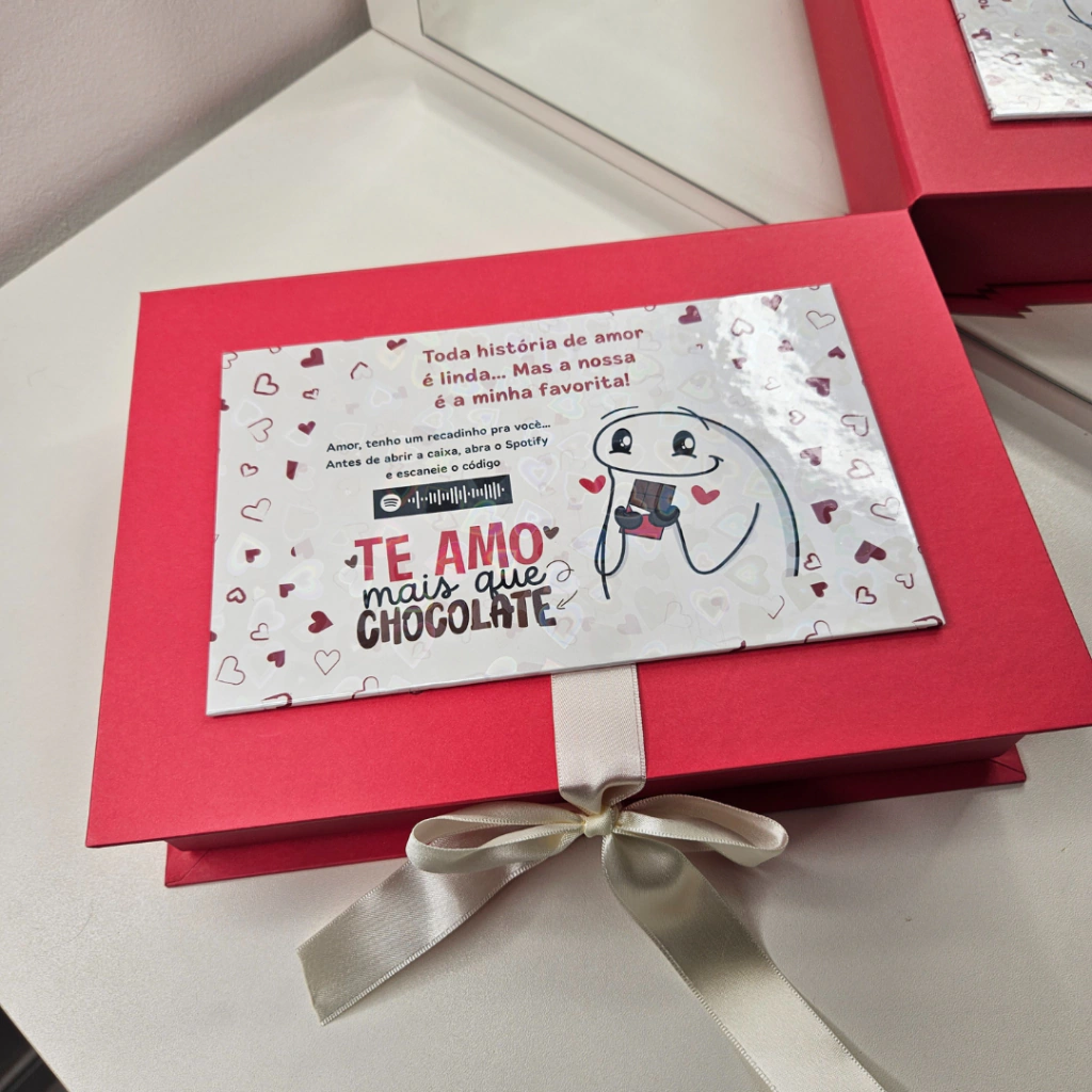 Surpreenda com um presente cheio de afeto, criatividade e um toque musical! Nossa caixa cartonada personalizada vem com cards temáticos da música “Chocolate” de Luan Santana, prontos para você colar chocolates em cada um deles. Uma forma doce e divertida de demonstrar carinho!