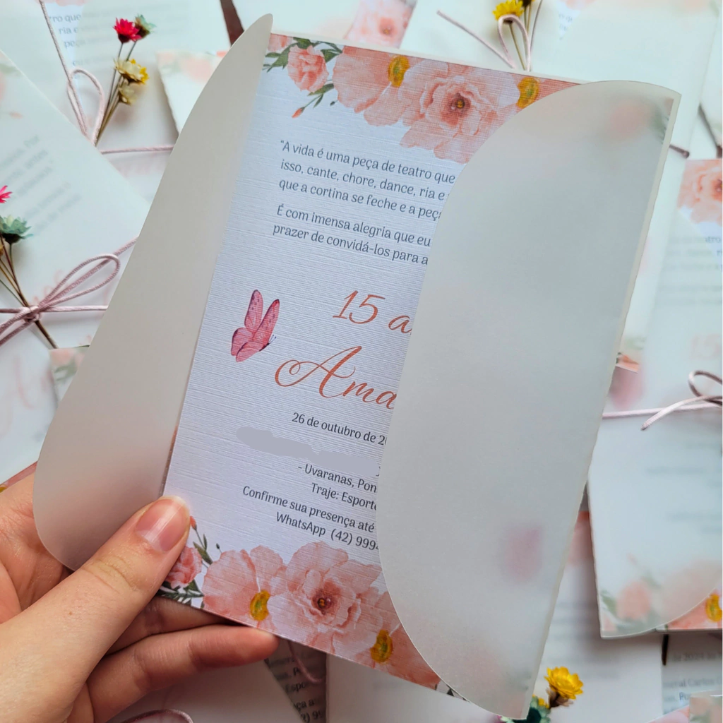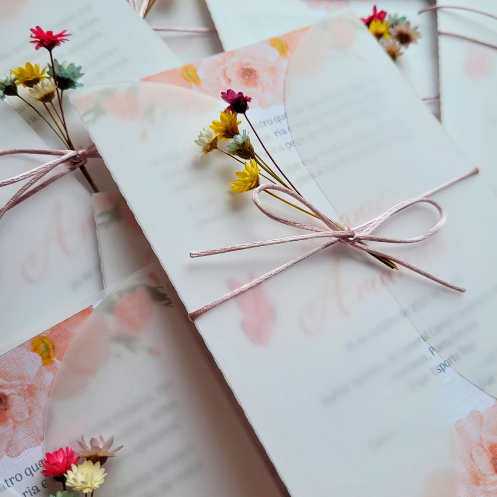 Dê o tom ideal à sua festa com convites que são verdadeiras obras de arte! Cada um de nossos convites é feito à mão, com atenção a cada detalhe, garantindo que eles reflitam a essência e o estilo do seu evento.