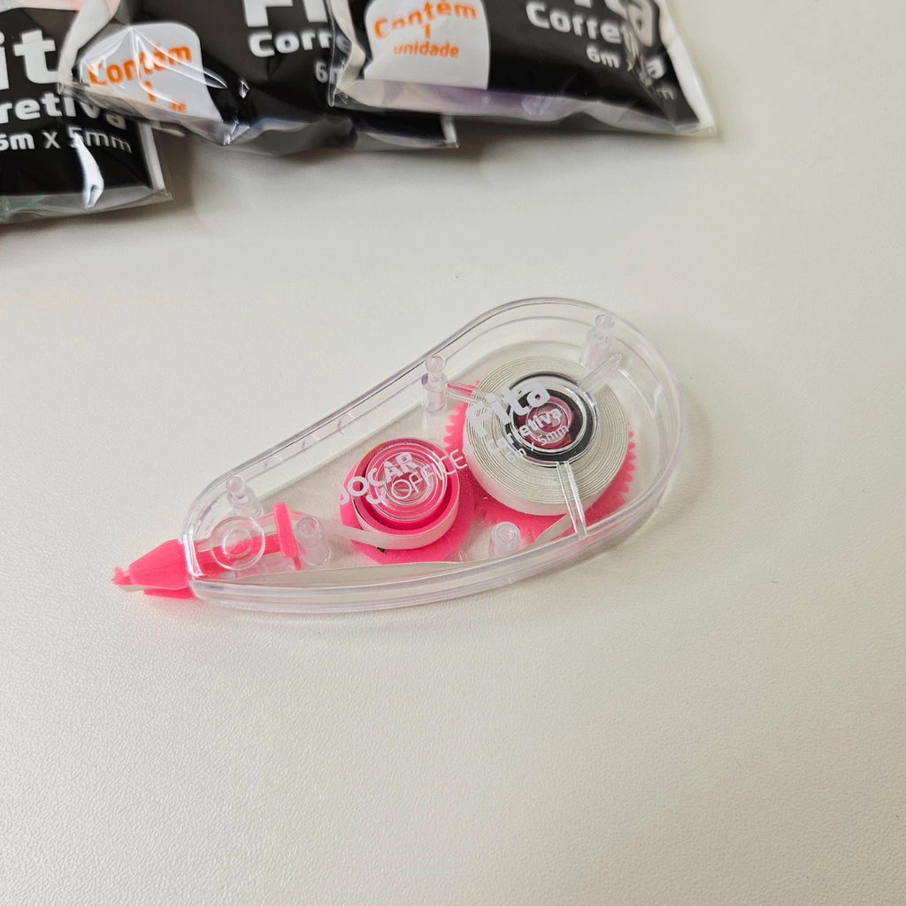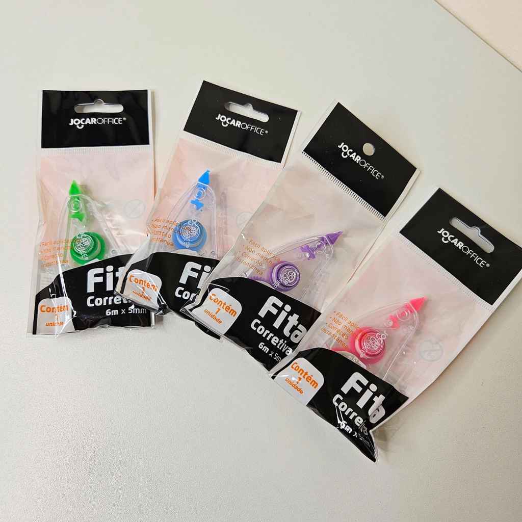 O corretivo de fita, também conhecido como fita corretiva, é um tipo de produto usado para corrigir erros de escrita ou impressão em papel. É uma alternativa conveniente e prática aos corretivos líquidos tradicionais. O corretivo de fita é composto por uma fita de plástico que contém uma tira de tinta branca opaca em seu interior. Ele é projetado para ser desenrolado e aplicado diretamente sobre o erro no papel. Ao pressionar a fita sobre a área errada, a tinta branca é transferida para cobrir o erro, proporcionando uma superfície corrigida e pronta para reescrever ou reimprimir. Disponível nas cores :Verde, Azul, Rosa, Roxo. - Marca: Jocar Office - Medida: 5mm x 6m. - Secagem instantânea. - Atóxico. Composição: Pigmentos e polietileno.