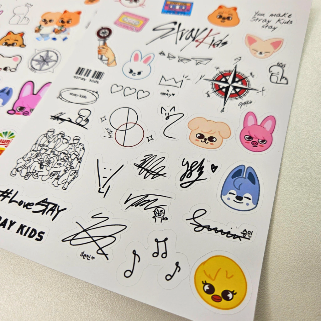 Se você ama deixar tudo com a sua cara (e a do seu grupo favorito), esse kit é pra você! As duas cartelas vêm recheadas de adesivos temáticos do Stray Kids, prontos pra deixar planners, cadernos, celulares, espelhos ou onde mais você quiser com um toque especial de amor por eles.