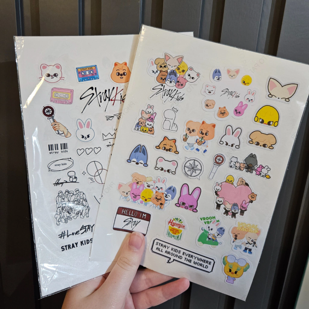 • 2 cartelas de adesivos temáticos do Stray Kids
