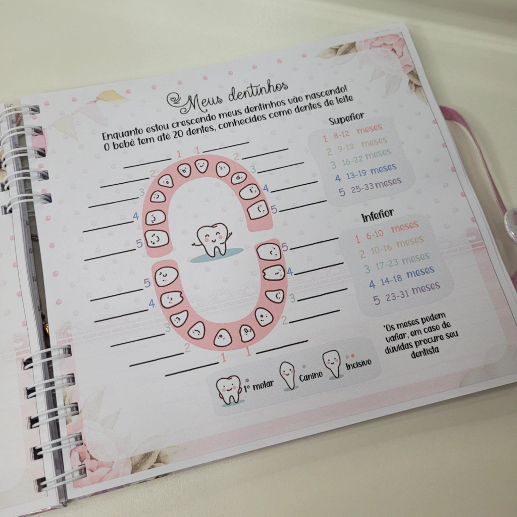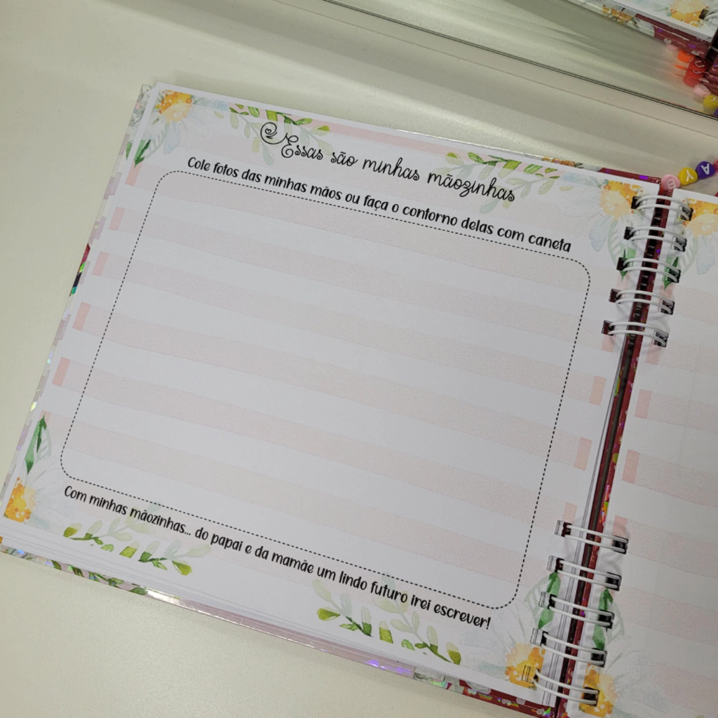 Capture e preserve cada momento especial da vida do seu bebê com o nosso Livro do Bebê Personalizado! Este lindo livro oferece espaço para escrever e colar fotos desde a espera do bebê até seus primeiros anos de vida, acompanhando marcos e datas importantes de forma única e personalizada.
