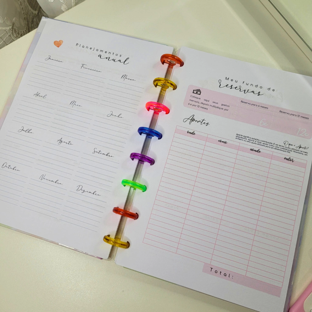 Mantenha suas finanças organizadas e sob controle com o Planner de Controle Financeiro Infinito Personalizado! Este caderno é a ferramenta perfeita para quem deseja acompanhar suas despesas, receitas e metas financeiras de forma prática e personalizada. Com o sistema de discos, você pode reorganizar as páginas, adicionar refis e adaptar o caderno às suas necessidades financeiras ao longo do ano.