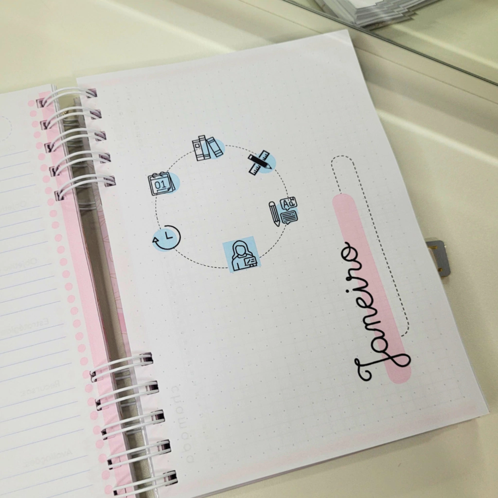 Organize suas aulas e atividades de maneira prática e estilosa com o Planner de Professor Personalizado. Compacto e funcional, o tamanho A5 é ideal para levar a qualquer lugar, mantendo o planejamento escolar sempre à mão.